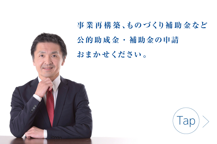 助成金・補助金の申請手続きのアドバイス 。中小企業・個人事業主の方にとって大きな支援となる助成金・補助金をご提案いたします。