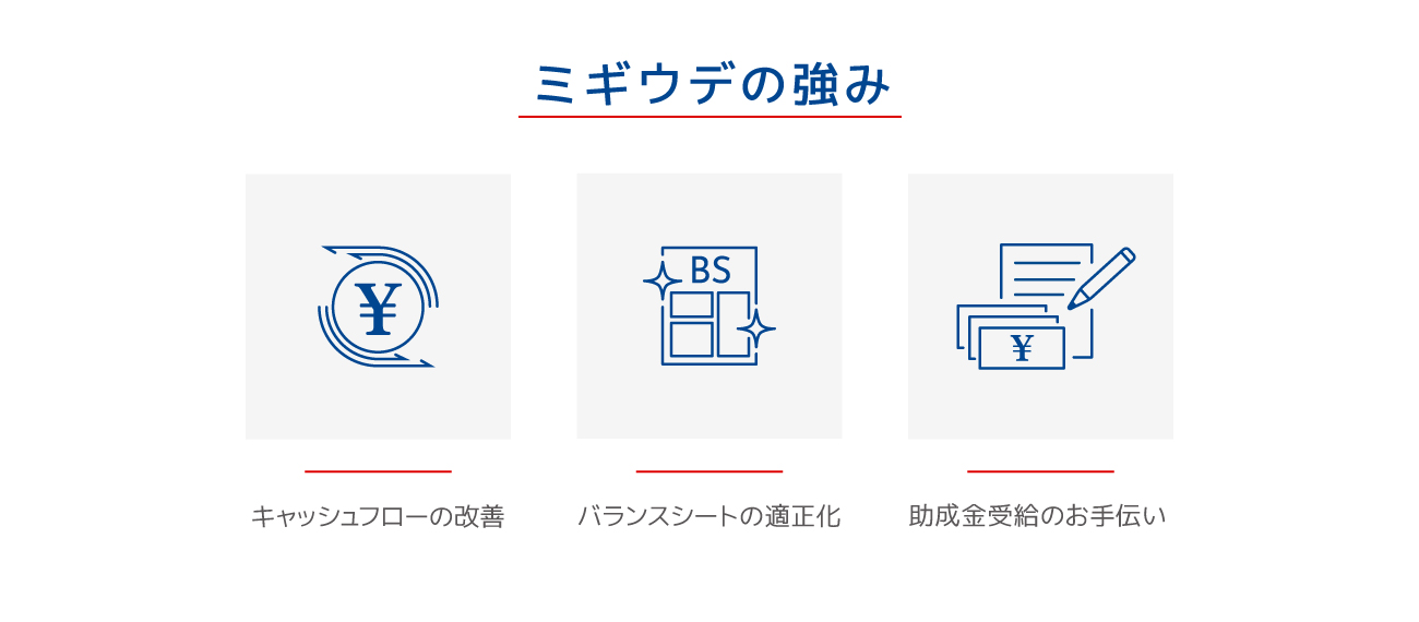 「儲かっているけれどお金が残らない」 「月末の支払いや給与支払いの際の資金手当てに、よく苦労する」などお金の悩みを抱える事業主様は多いと思います。現状の資金繰りを見直し、短期、中期の資金計画を作成し、最適な財務戦略をご提案いたしま す。